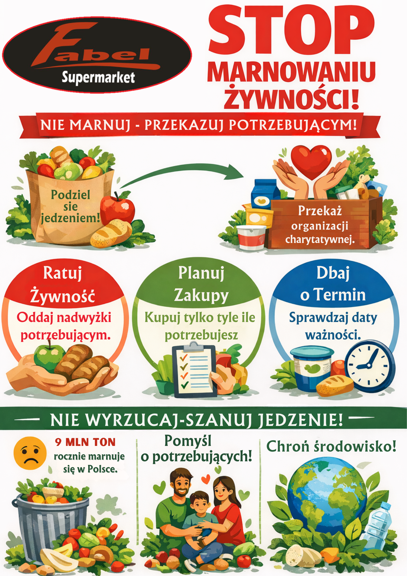 Supermarket Fabel od lat aktywnie wspiera inicjatywy mające na celu ograniczenie marnowania żywności. Odpowiedzialne gospodarowanie produktami jest dla nas nie tylko obowiązkiem, ale również ważnym elementem troski o środowisko i lokalną społeczność. Obecnie współpracujemy ze Stowarzyszeniem „Wielkoduszność” w Parczewie, wspierając działania na rzecz racjonalnego wykorzystania żywności. Wśród podejmowanych przez nas działań znajdują się m.in.: Skuteczne […]